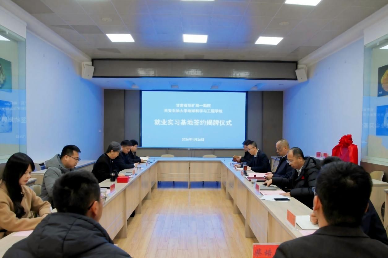 为深入贯彻学校关于促进毕业生高质量就业的决策部署,落实《西安石油大学多元协同育人工作实施方案》(西石大党生办〔2026〕7号)精神,将就业工作作为“一把手工程”抓实抓细,地球科学与工程学院党委高度重视、提前谋划,于1月20日至26日组织党政联合行动,由学院党委书记高黎、副书记董丙剑带队,院长助理冯旭亮,应用地球物理系副主任杨飞龙、副教授孟祥宁,学生工作办公室主任姜楠等组成专项工作组,利用寒假窗口期,赴陕西、甘肃两省开展访企拓岗促就业专项行动。工作组聚焦构建“大能源”就业格局,主动对接行业骨干单位,通过实地走访、座谈交流、签约揭牌等形式,深入了解地质勘探行业发展动态与人才需求,拓展毕业生就业渠道,并就校企协同育人、科研合作、就业实习基地共建等达成系列务实合作成果。