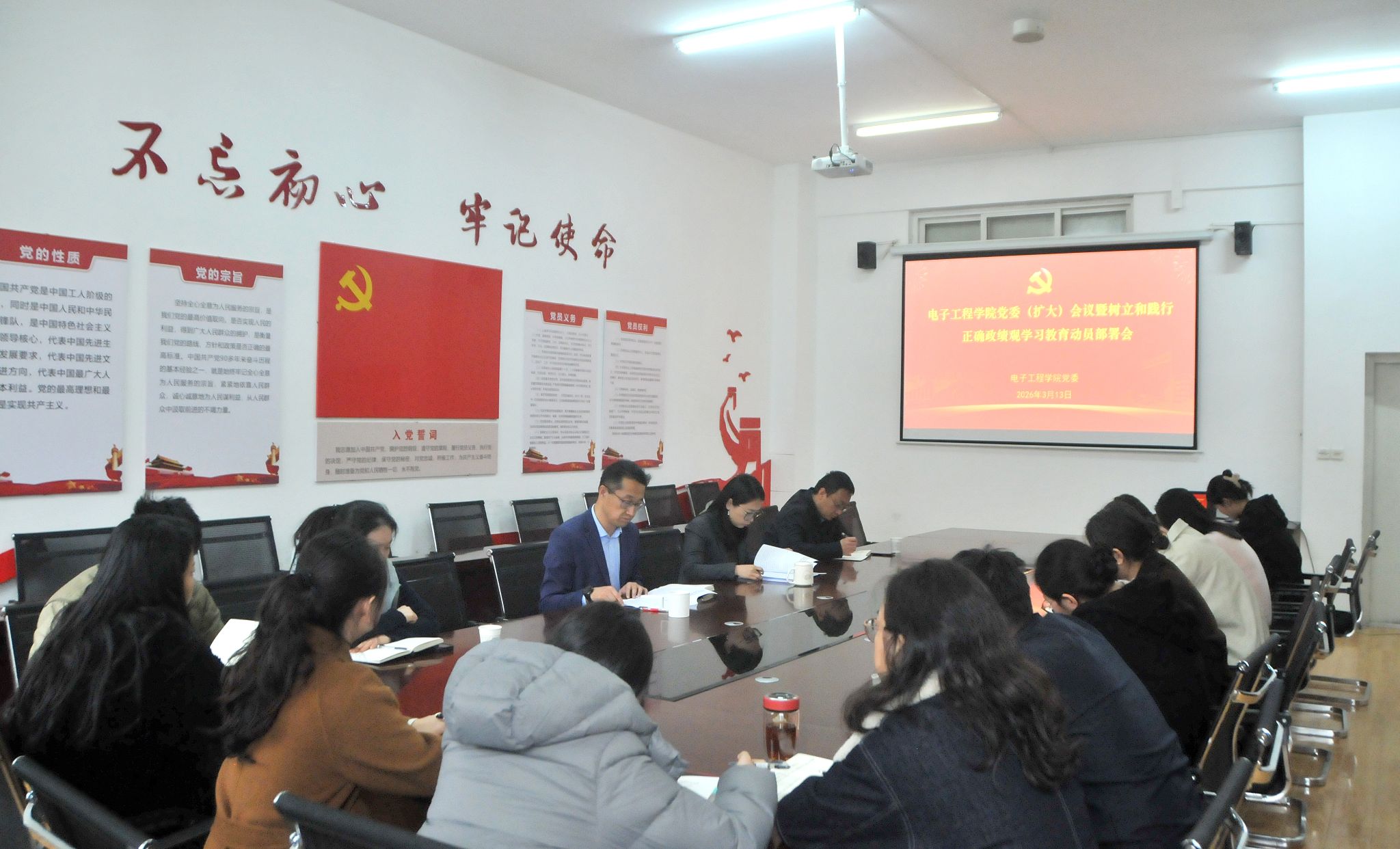 3月13日下午,电子工程学院在鄠邑校区行知楼321会议室召开党委(扩大)会议暨树立和践行正确政绩观学习教育动员部署会,认真学习贯彻习近平总书记关于在全党开展树立和践行正确政绩观学习教育的重要指示,传达学习学校党委相关会议精神,启动部署学院学习教育工作。学院党委书记潘娜主持会议,学院党委委员、各党支部书记参加会议。