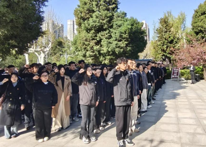 活动最后,全体党员在纪念碑前合影留念,并在主题横幅上郑重签名,许下铭记历史、传承红色基因、弘扬英烈精神的庄严承诺。签名仪式不仅是对先烈的告慰,更是青年学子立足当下、奔赴未来的誓言。此次祭扫活动,既是一场缅怀先烈的追思之行,也是一堂生动的爱国主义教育课。参与活动的研究生们纷纷表示,将以革命先烈为榜样,传承先辈崇高精神,潜心科研、精进学业,勇于攻克技术难题,以青春之我、奋斗之我,让红色基因代代相传,为建设教育强国、实现中华民族伟大复兴贡献青春力量。
