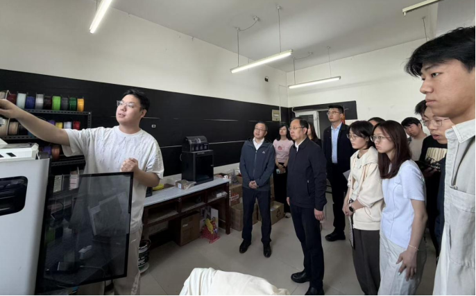 种宇宏带领所在班级同学,在3D打印创业工作室负责人、机创2401班郭劲恺同学的指引下,实地参观了工作室的设备设施及科创成果展示,详细听取了创业团队的人员组成、运营模式、创业历程和发展规划,并对创业团队敢闯敢试的劲头、开拓创新的精神以及创新成果表示赞扬。他指出,大学生创新创业工作是高校落实立德树人根本任务、深化人才培养模式改革的重要支撑和关键抓手,学校高度重视学生创新思维塑造和实践动手能力培育,将以人才培养体系重塑为抓手,持续搭建创新创业平台、完善帮扶保障机制,助力学子在创新创业赛道上跑得更快更远。他勉励所在班级同学要以优秀创业学长学姐为榜样,立足专业所学、深耕创新实践,把课堂知识与实践创新紧密结合,勤于钻研、大胆尝试,在创新创造中锤炼专业本领、积累成长经验,努力实现学业提升与科创成长双向赋能,以青春奋进之姿逐梦科创未来,进一步书写大学精彩篇章。